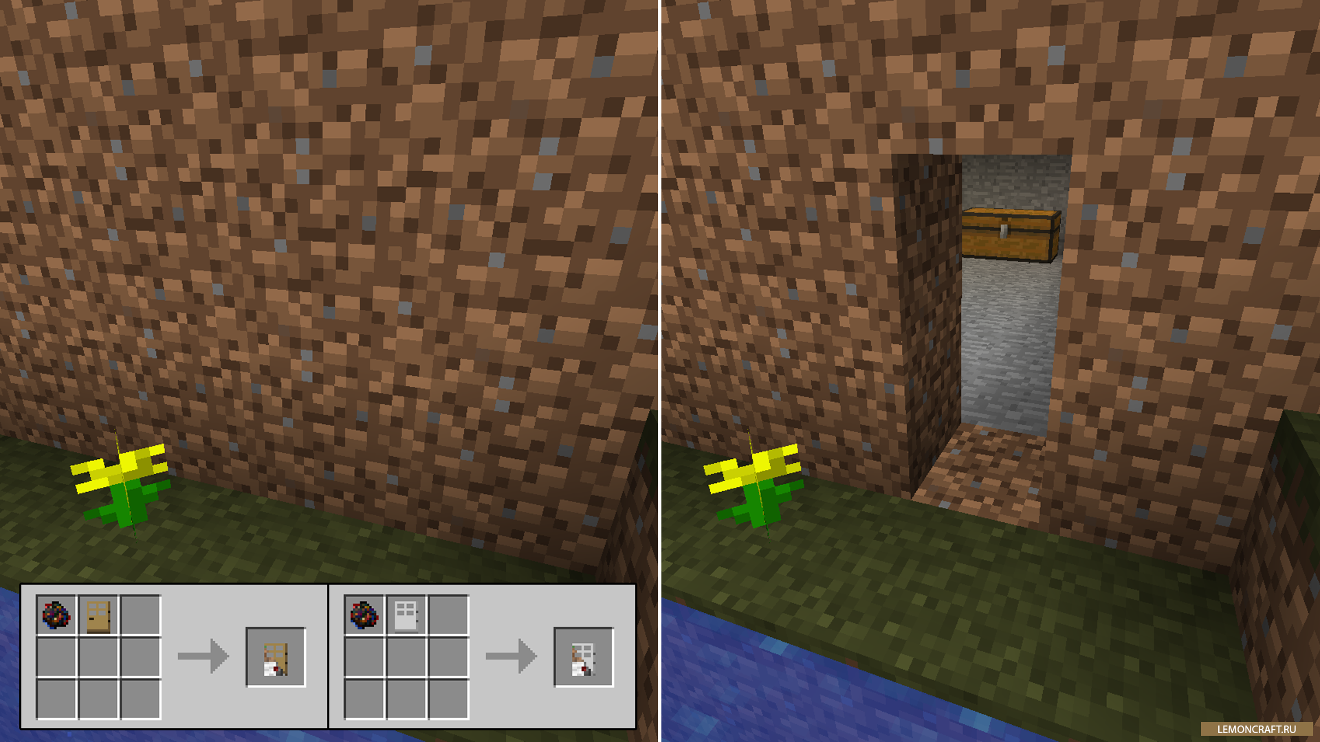 Мод Secret Rooms добавит в игру множество секретных блоков и ходов. Теперь вы сможете спрятать все, что накоплено вашим непосильным трудом. Если кто то попытается украсть ваши драгоценности вы об этом сразу же узнаете. Полезный моб для всех у кого есть, что прятать.